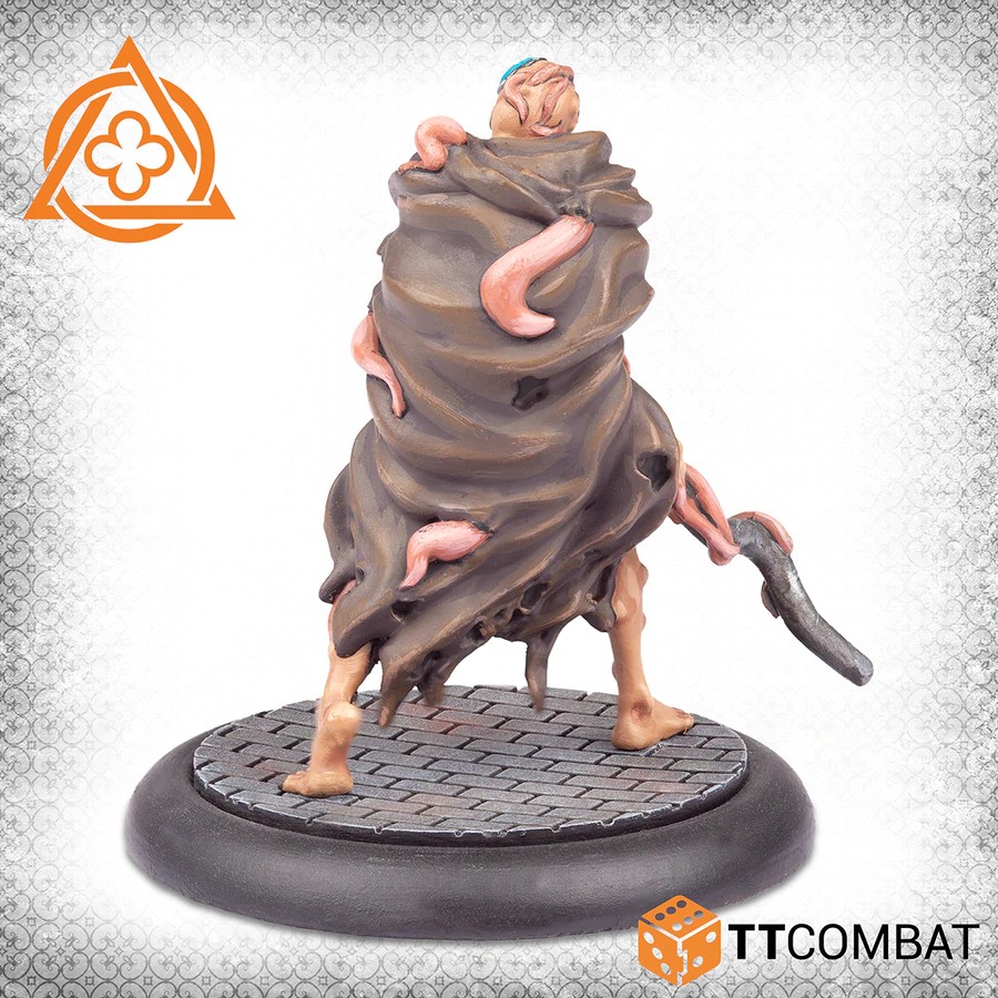 Cet ensemble contient un fou échappé. Fraîchement débarqué de San Servolo, le fou évadé a émergé de l'autre côté de la lagune une personne changée. Cachés sous les robes se trouvent des masses de tentacules et d'orbes incandescents qui surchargent de puissance. Ce n'est pas un super look !