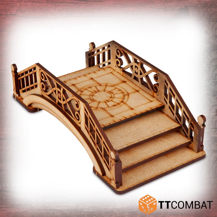 Le pont Ringhiera est fabriqué en MDF de 3 mm. C'est un excellent décor à utiliser sur la table pour Carnevale et fonctionnera parfaitement avec d'autres jeux 28-32 mm.