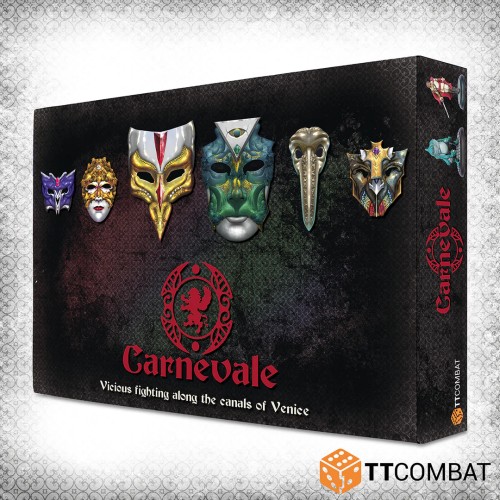- Livret de règles Carnevale - le livre complet de 240 pages rempli à ras bord d'informations générales et de règles faciles à apprendre. Il y a des sections sur chaque faction à Venise, ainsi qu'une campagne pour chacune, offrant 35 scénarios individuels à jouer.