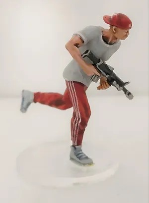 survivaliste équipé d'un fusil d'assaut peint par Fred dit "Le Kiné" du club Tuperforge Marseille.