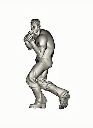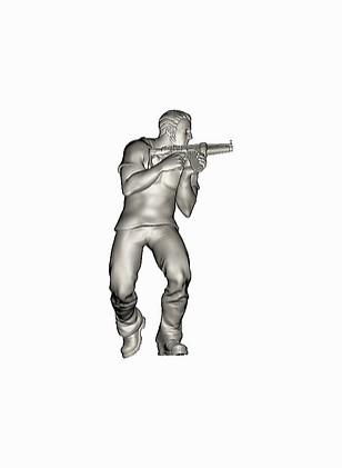 un survivaliste équipé d'un pistolet automatique peint par Fred dit "Le Kiné" du club Tuperforge Marseille.