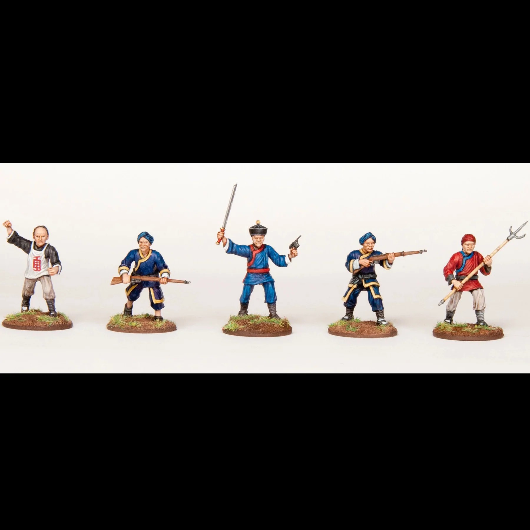 Ce coffret en plastique dur vous permet de construire jusqu'à 30 guerriers avec des options pour créer les célèbres Braves et Tigermen de Kansu (Gansu). Cette boîte peut également être utilisée pour d'autres périodes comme les guerres de l'opium, la rébellion de Taiping, la première guerre sino-japonaise et jusqu'au XXe siècle.